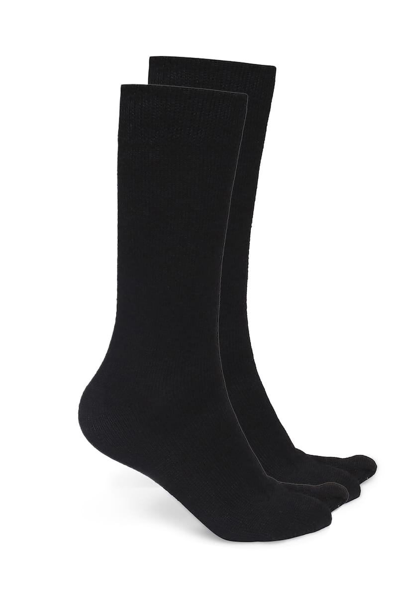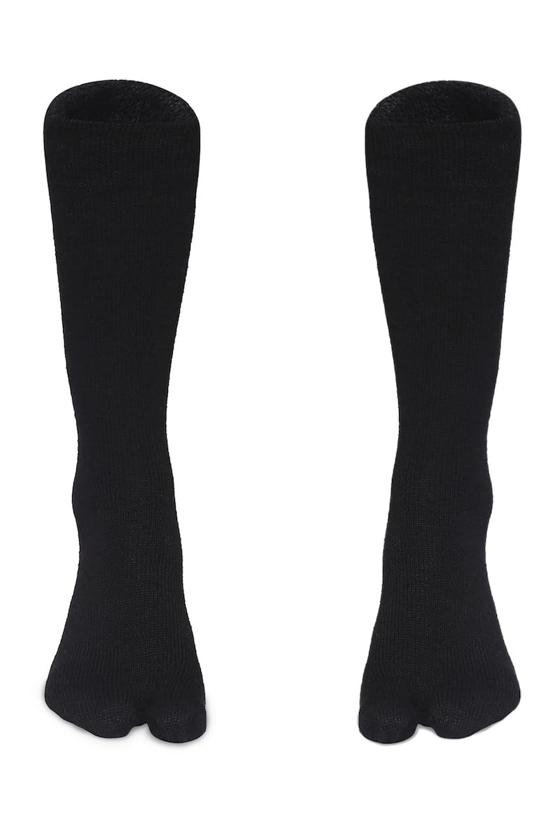 Keep your feet warm and toasty with these pure wool socks. Created with stretch fabric for ease of movement and comfort. These socks have a special thumb extension making them ideal to wear with flat chappals, flip flops and sandals.
